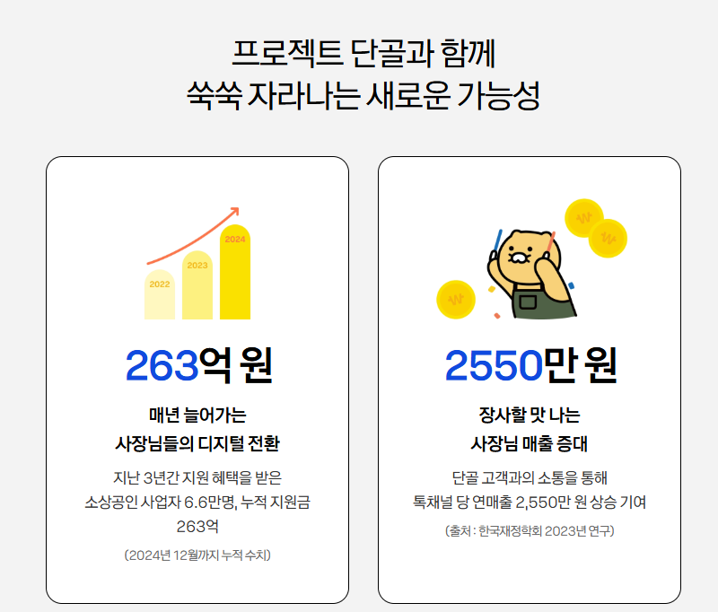 현금은 아니지만, 마케팅 자원을 직접 제공해 주는 만큼 소규모 가게에는 딱 맞는 지원입니다.