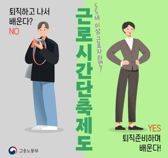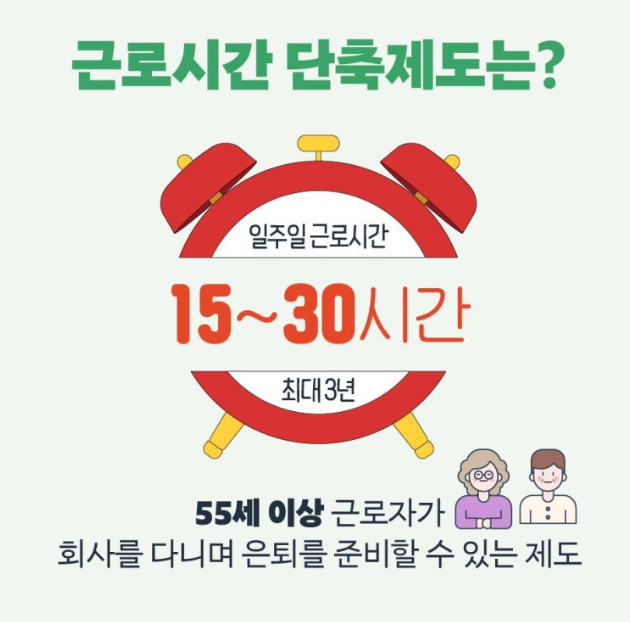 은퇴를 앞둔 55세 이상 근로자분들께 희소식! 일을 완전히 그만두기 전에 미리 인생 2막을 준비할 수 있는 근로시간 단축제도가 있다는 사실, 알고 계셨나요?